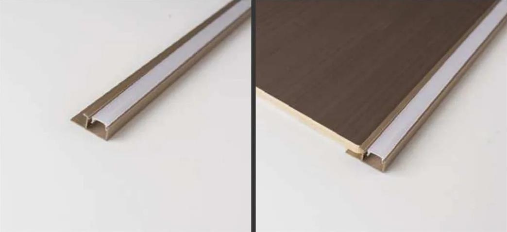 Использование алюминиевого монтажного профиля значительно упрощает монтаж стеновых панелей Baijax. Он позволяет скрыть детали, а также предоставляет большие возможности для использования таких интересных решений, как светодиодная лента.