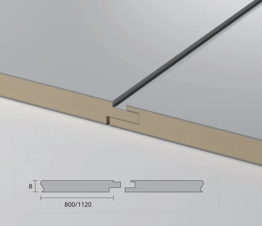 Baijax предлагает уникальную серию стеновых и потолочных декоративных панелей с замком. Такая конструкция упрощает монтаж отделочного материала и позволяет обеспечить быструю и точную стыковку. Стандартный размер панелей — 1,1 х 2,8 метров, однако под заказ мы можем изготовить материал с индивидуальными параметрами. Срок изготовления и доставки — от 6 недель. На выбор заказчика предлагаются стеновые и потолочные панели с различными типами замкового соединения.